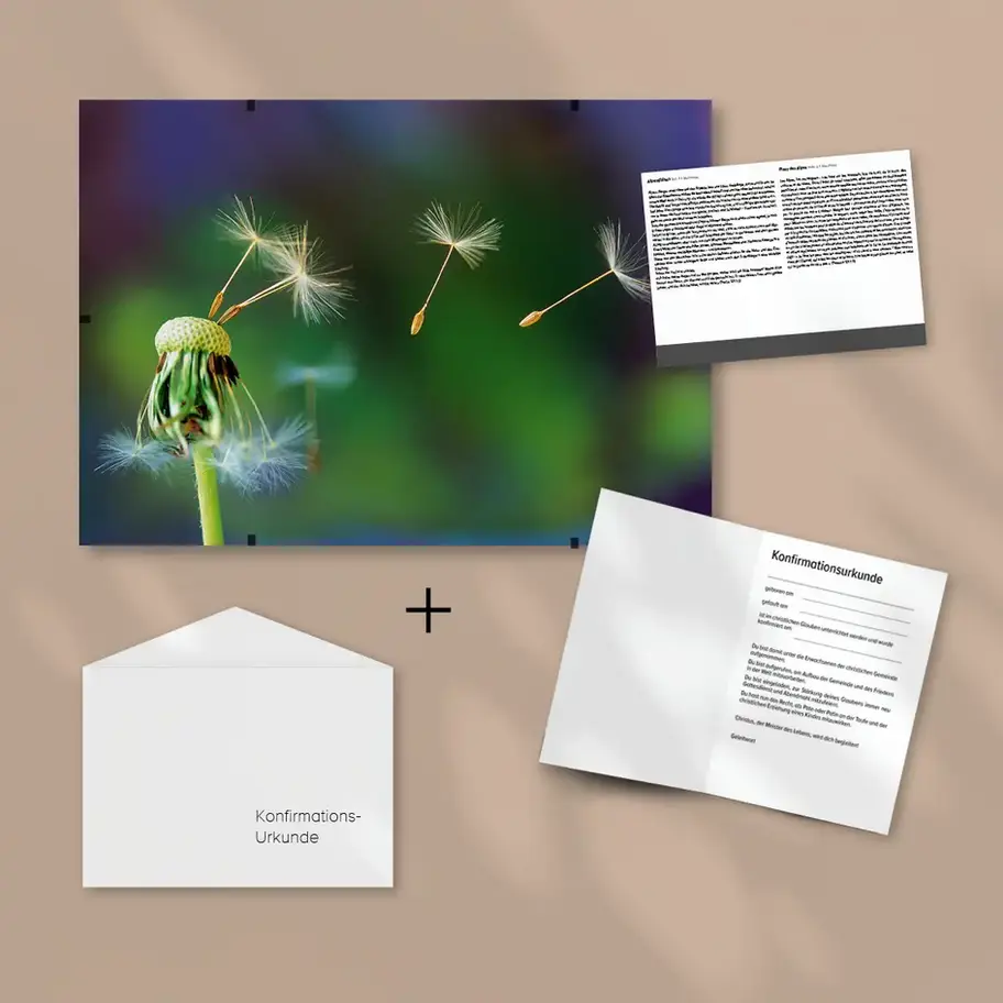 Konfirmationsbild, Bilderrahmen, Bildbeschreibung, Konfirmationsurkunde, Kuvert